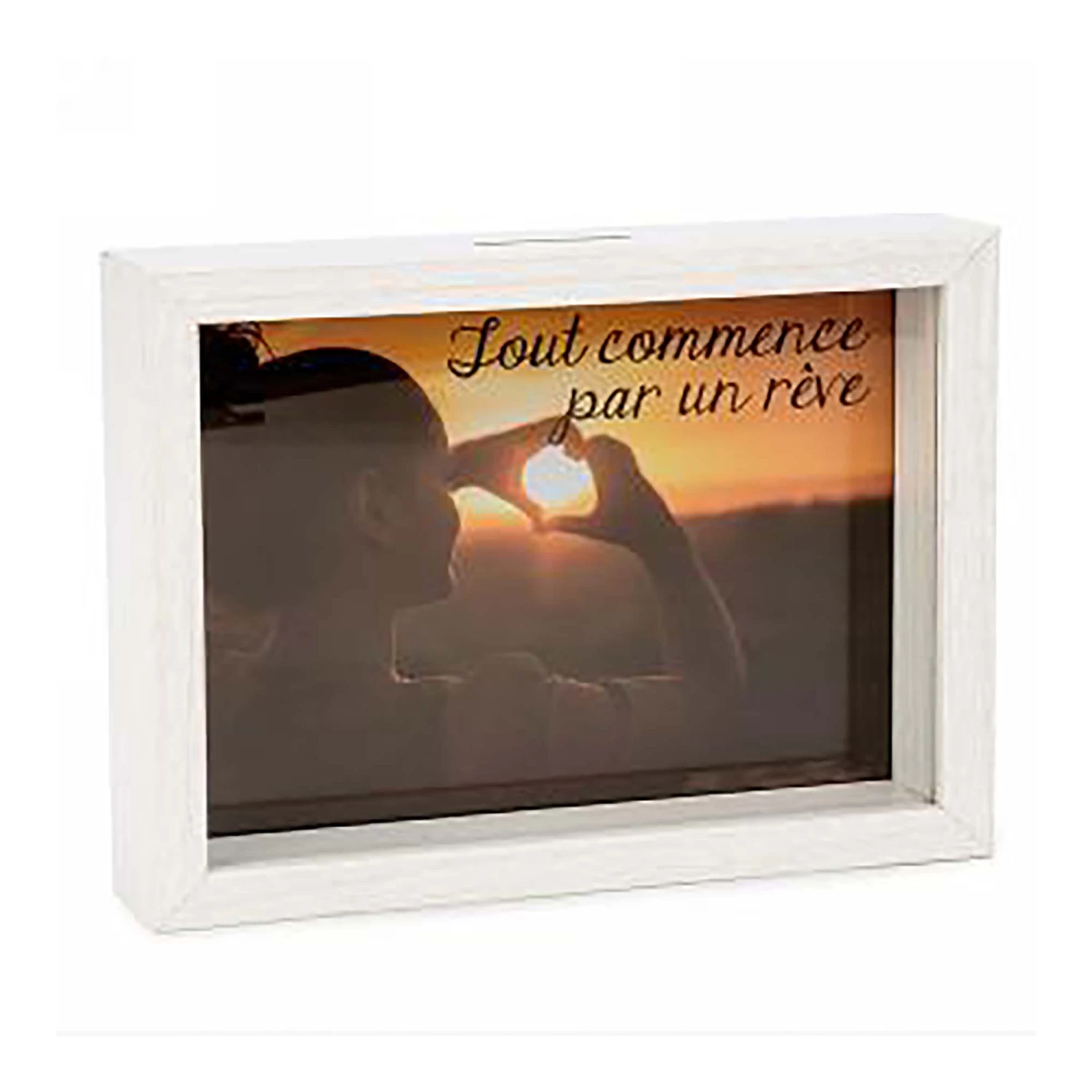 • Tirelire avec l’inscription “Tout commence par un rêve”