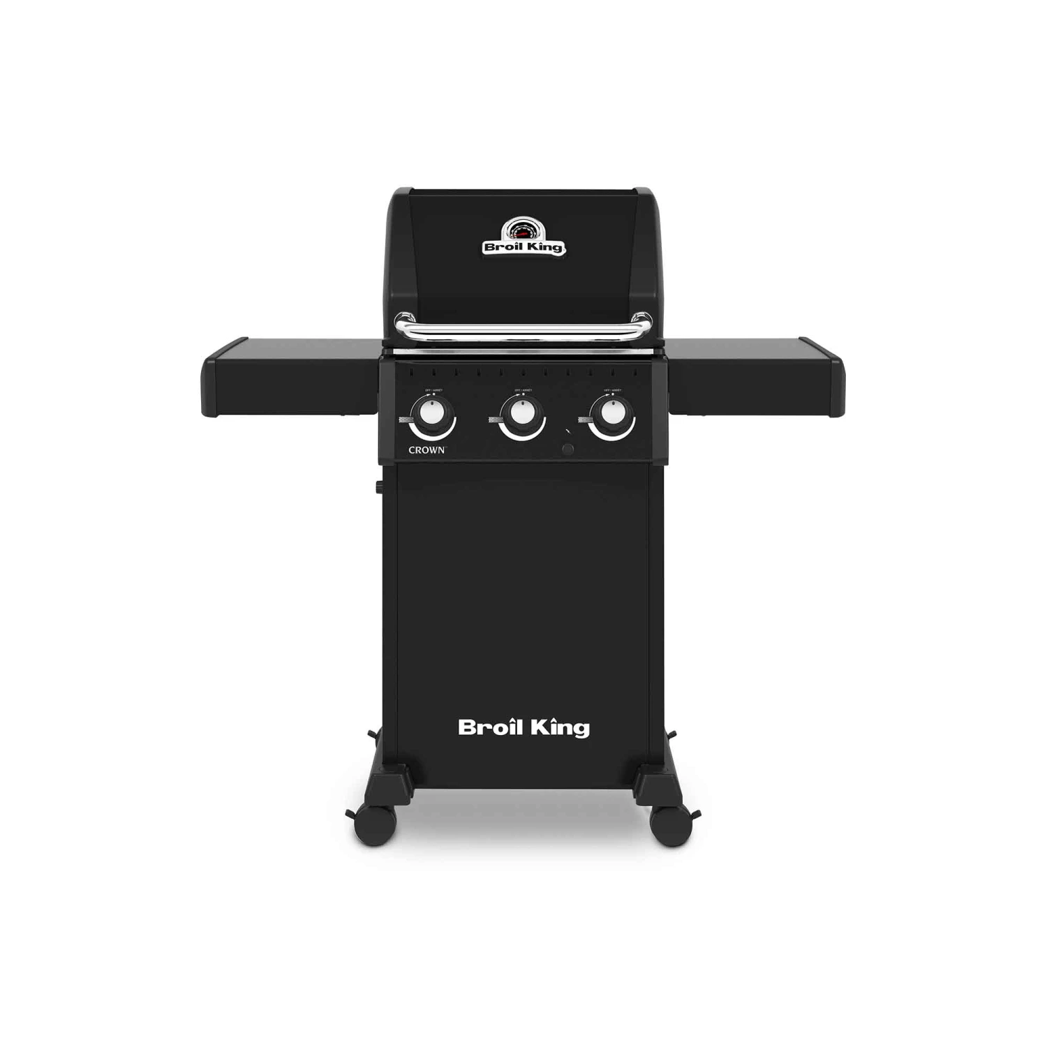 • Toutes les séries Crown 300 comprennent des grilles de cuisson en fonte robustes à 3 positions, des étagères latérales rabattables noires et une base d’armoire noire fermée