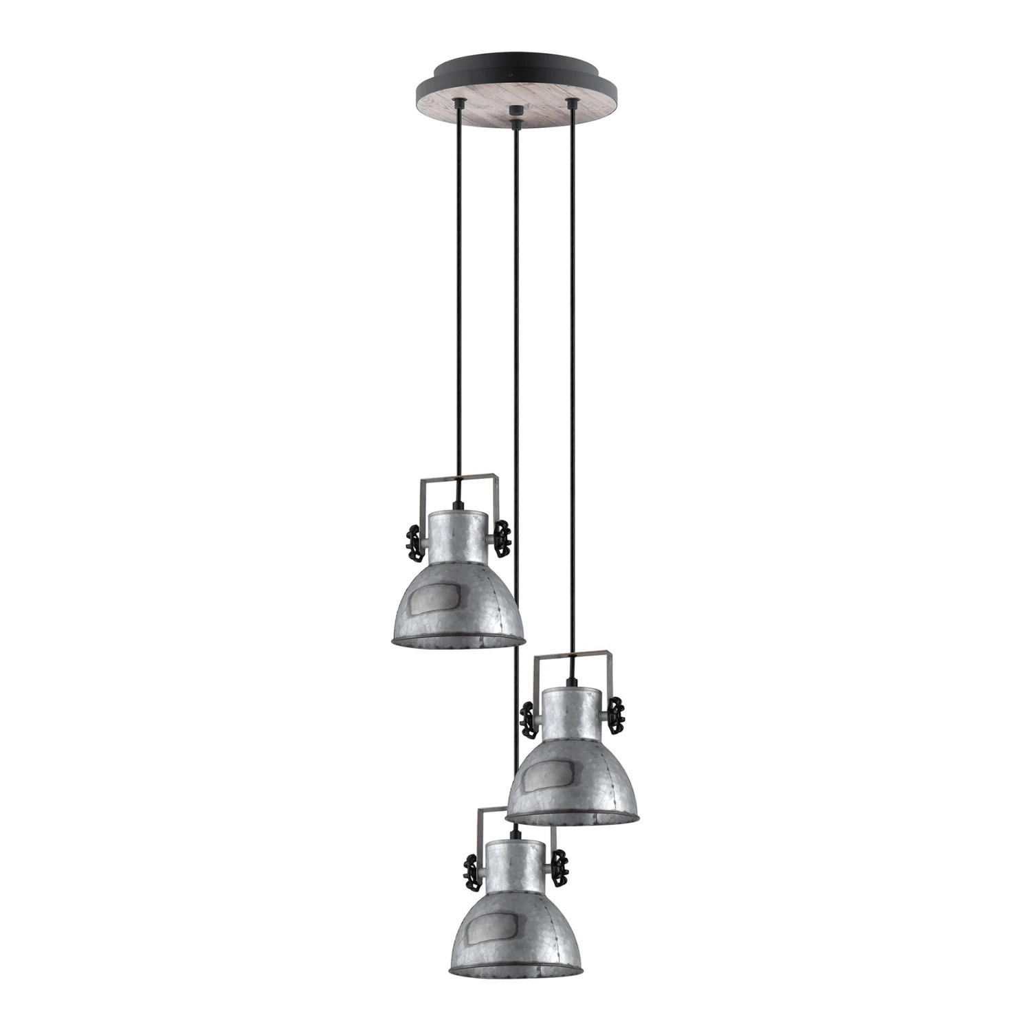 • Fini noir et bois blanchi avec abat-jours en métal zinc vieilli et noir